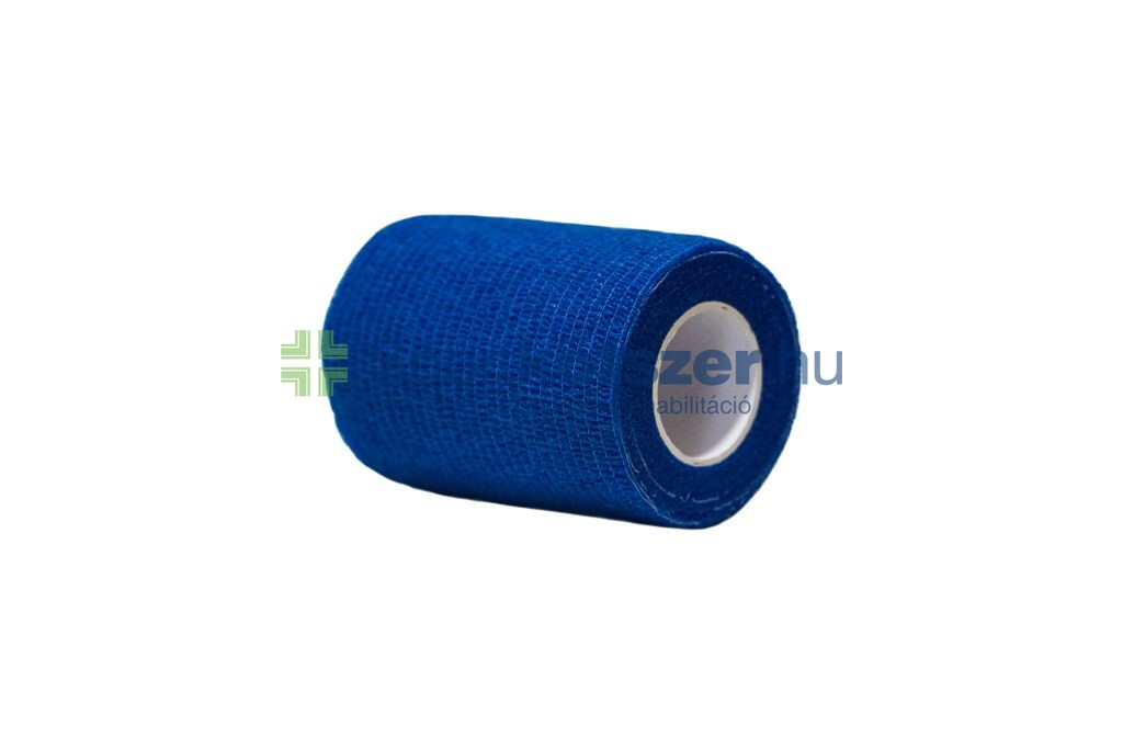 Öntapadó rugalmas pólya nem szőtt 7.5cm x 4.5m kék önmagában vagy sport tape alá használt csúszásmentes rögzítőkötés. Összetétel: 85% polipropilén, 15% spandex. Az erős tapadóképesség miatt kisebb mennyiség felhasználására van szükség, mert pár pólyamenet biztos, tartós rögzítést eredményez. Nem tapad a bőrre, szőrzetre, vagy ruházatra, egyszerűen és gazdaságosan alkalmazható.