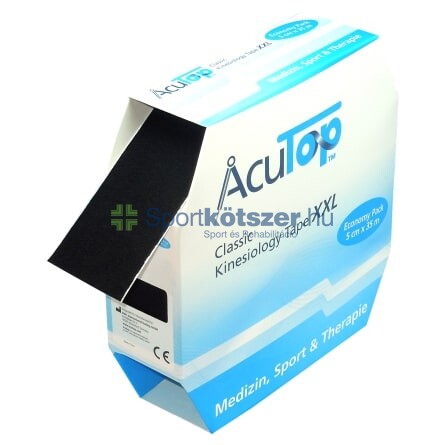 AcuTop XXL kineziológiai tapasz classic 5cm x 35m fekete, sport és terápiás célokra. Anyaga 93% pamut,7% spandex. Latexmentes ragasztó.